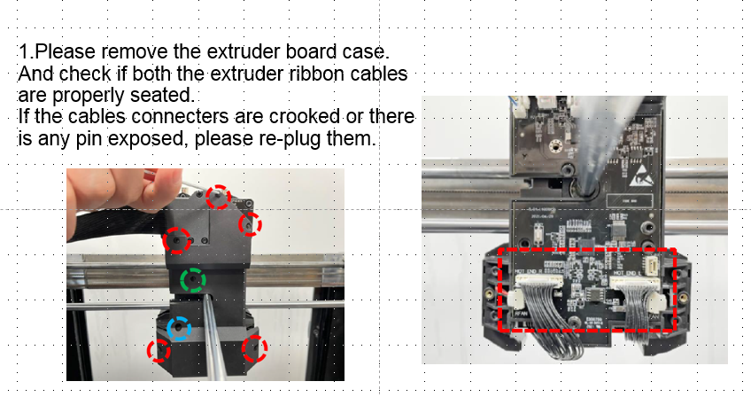 4. If error stays on the right, swap the left and right hotend adapter board cable as shown below and retest: