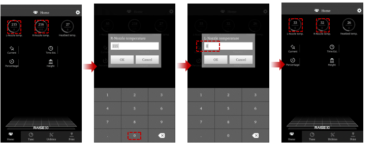 4. Überprüfen Sie in der Registerkarte "Utilities", dass die Temperatur für Ihr ausgewähltes Material eingestellt ist
