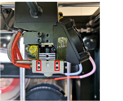14. Lockern Sie die 4 Madenschrauben mit einem 1,5 mm Inbusschlüssel im Heizblock. Dadurch wird das "Hotend"
