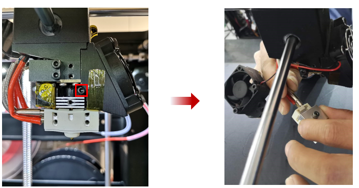 Lockern Sie die Befestigungsschraube, um das "Hotend" vom 3D-Drucker zu lösen.