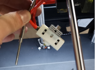 Vom Heizblock müssen Sie den Heizerstab und die Thermoelementdrähte entfernen, um das "Hotend" vollständig zu entfernen.