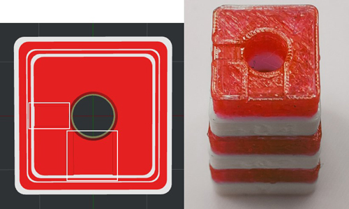 - Das unter idealen Bedingungen gedruckte Modell (wenn das XY-Offset beider Düsen 0 ist) sollte wie folgt aussehen: